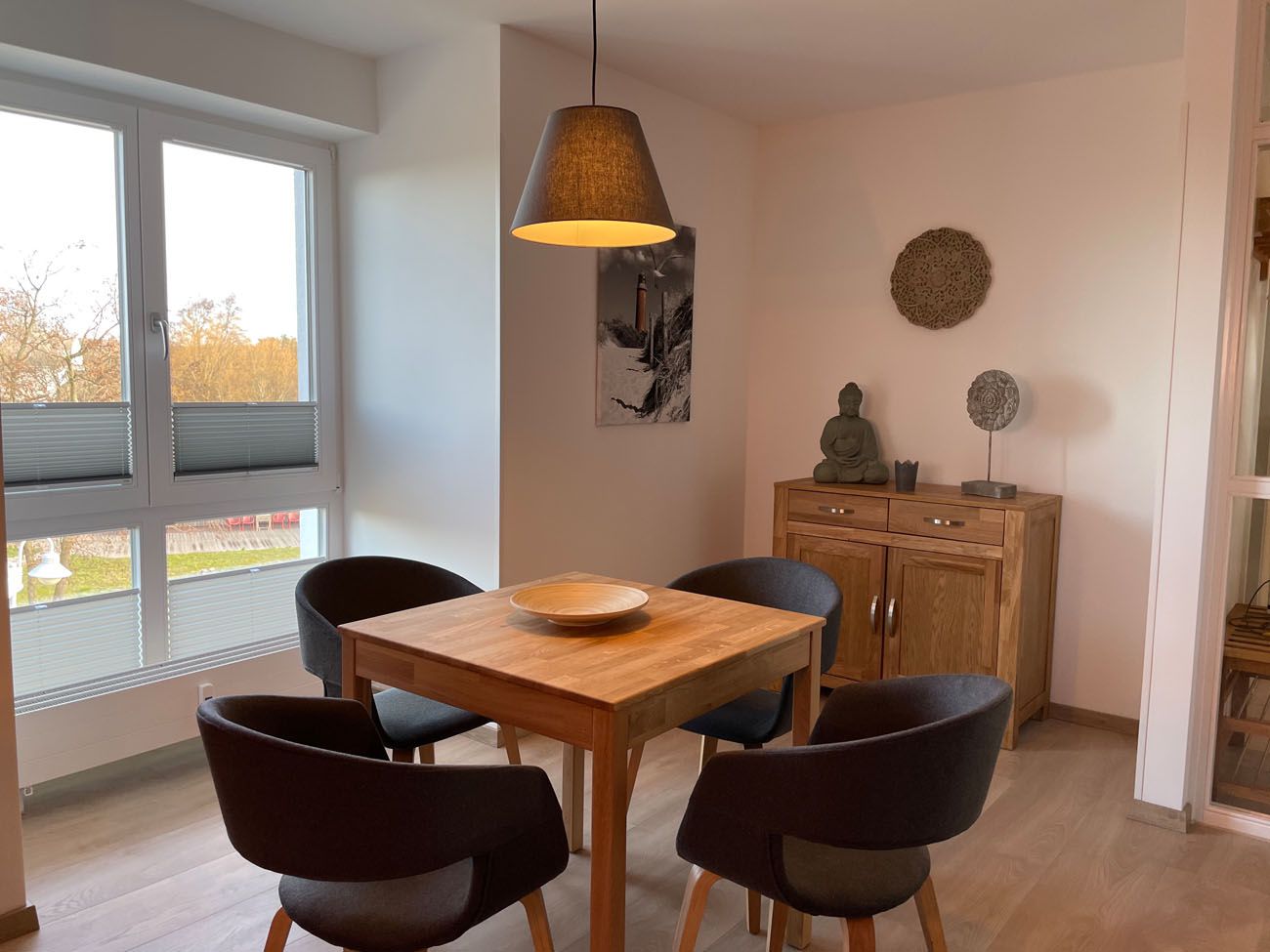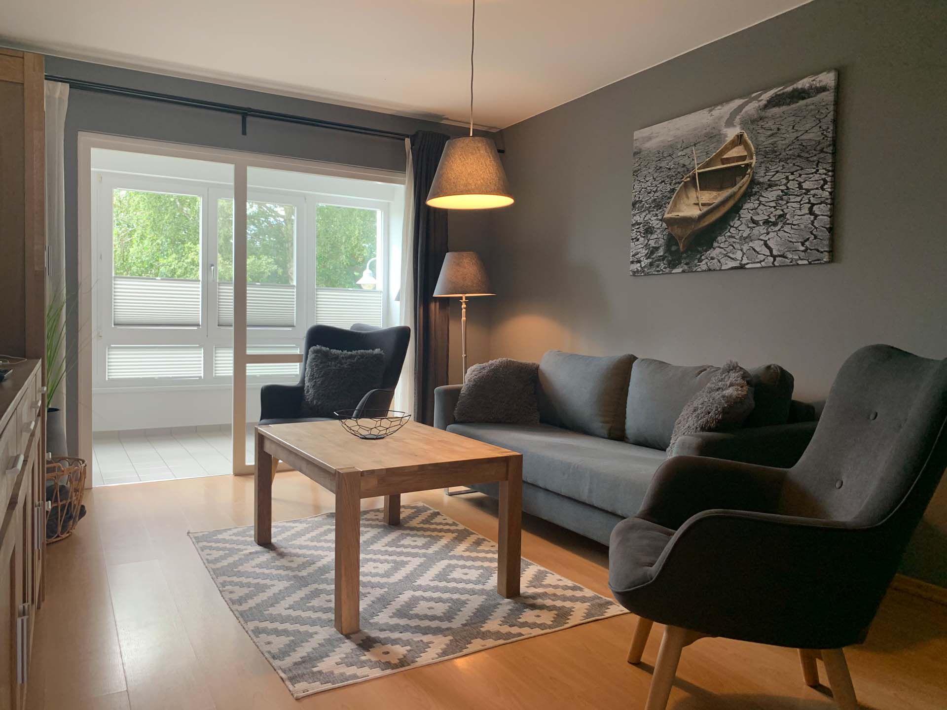 Die in 2019 für Sie neu renovierte und mit Liebe ausgestattete Ferienwohnung verfügt über einen gemütlichen Wohn- u. Essbereich für 4 Personen, einem Schlafzimmer mit Boxspringbett 180x200, einer abgeschlossenen Küche, einer Garderobe, einem Abstellraum, eine geschlossene Veranda mit zusätzlicher Sitzgelegenheit, welche zum Verweilen und Chillen einlädt. Im Wohnbereich befindet sich eine hochwertige Boxspring-Schlafcouch (ausgezogen 160x200), welche gerne von weiteren ein bis zwei Personen genutzt werden kann. Die Ferienwohnung ist ideal geeignet für 2-4 Personen (+1 Kleinkind) Zusammenfassung: