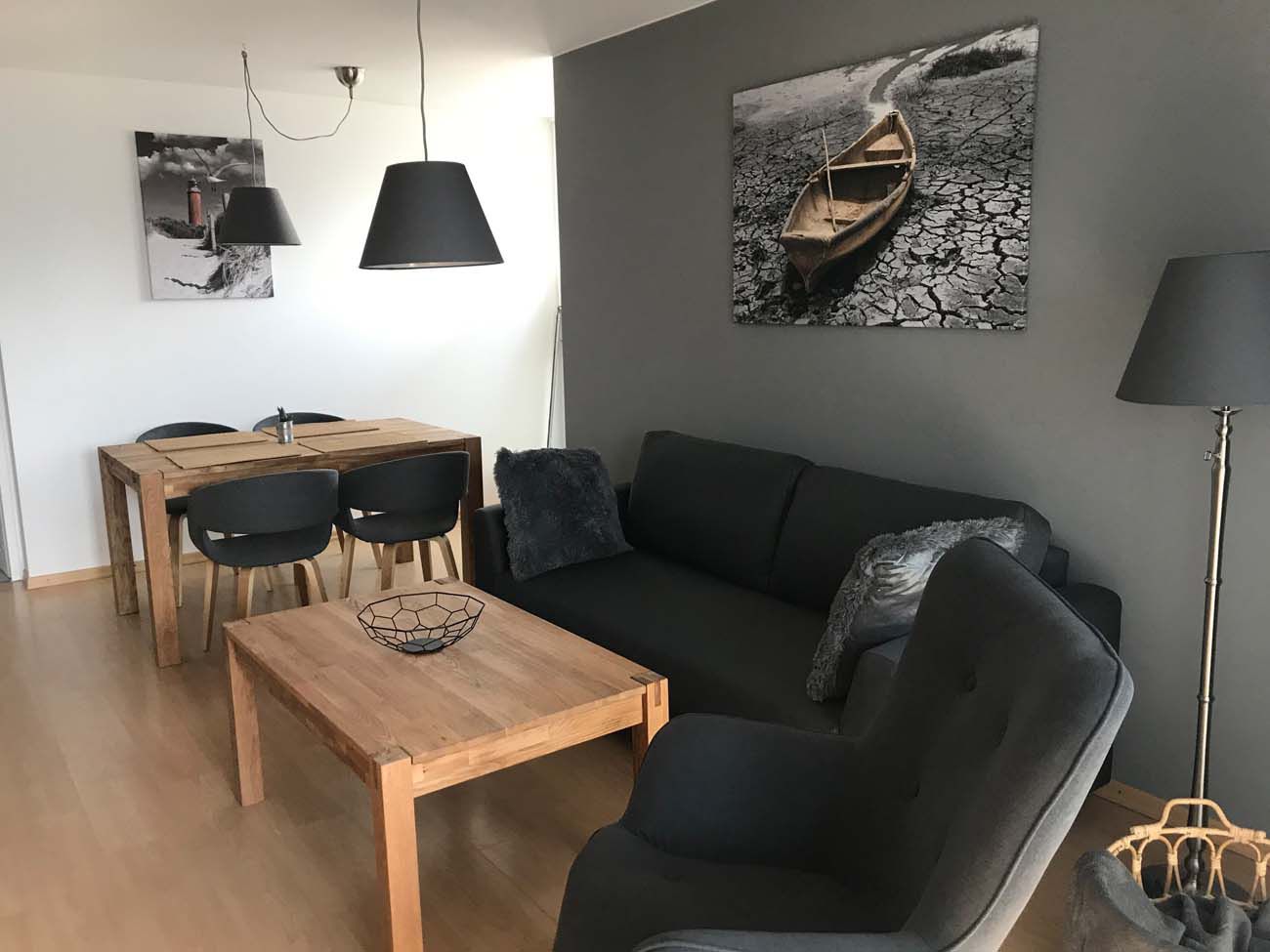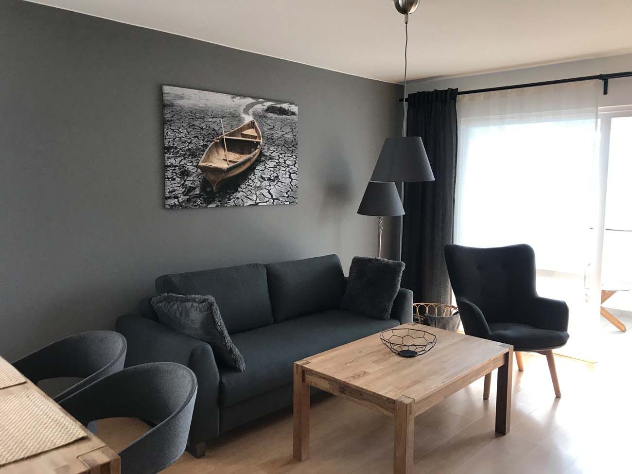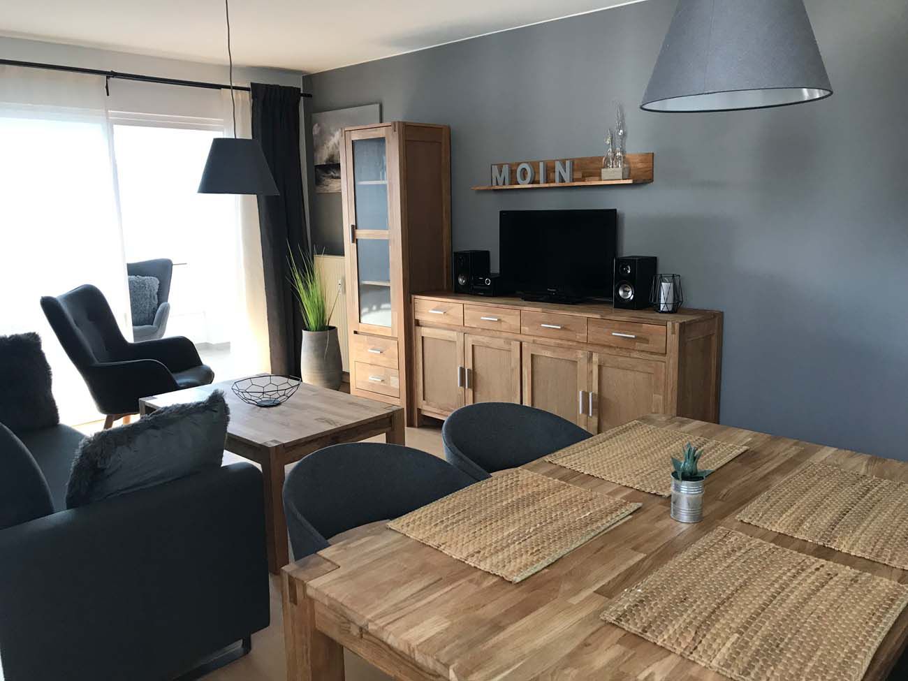 Die in 2019 für Sie neu renovierte und mit Liebe ausgestattete Ferienwohnung verfügt über einen gemütlichen Wohn- u. Essbereich für 4 Personen, einem Schlafzimmer mit Boxspringbett 180x200, einem Kinderzimmer mit einem ausziehbaren Tagesbett (ausgezogen 160x200 für 2 Personen), einer abgeschlossenen Küche, einer Garderobe, einem Abstellraum, eine geschlossene Veranda mit zusätzlicher Sitzgelegenheit, welche zum Verweilen und Chillen einlädt. Im Wohnbereich befindet sich eine hochwertige Boxspring-Schlafcouch (ausgezogen 160x200), welche gerne von weiteren ein bis zwei Personen genutzt werden kann. Die Ferienwohnung ist ideal geeignet für 2-6 Personen (+1 Kleinkind) Zusammenfassung: