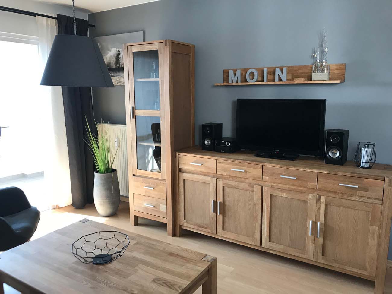 • Wohn- und Esszimmer: (Polstergarnitur, Couchtisch, Anbauwand, Esstisch mit 4 Stühlen, TV, Radio)