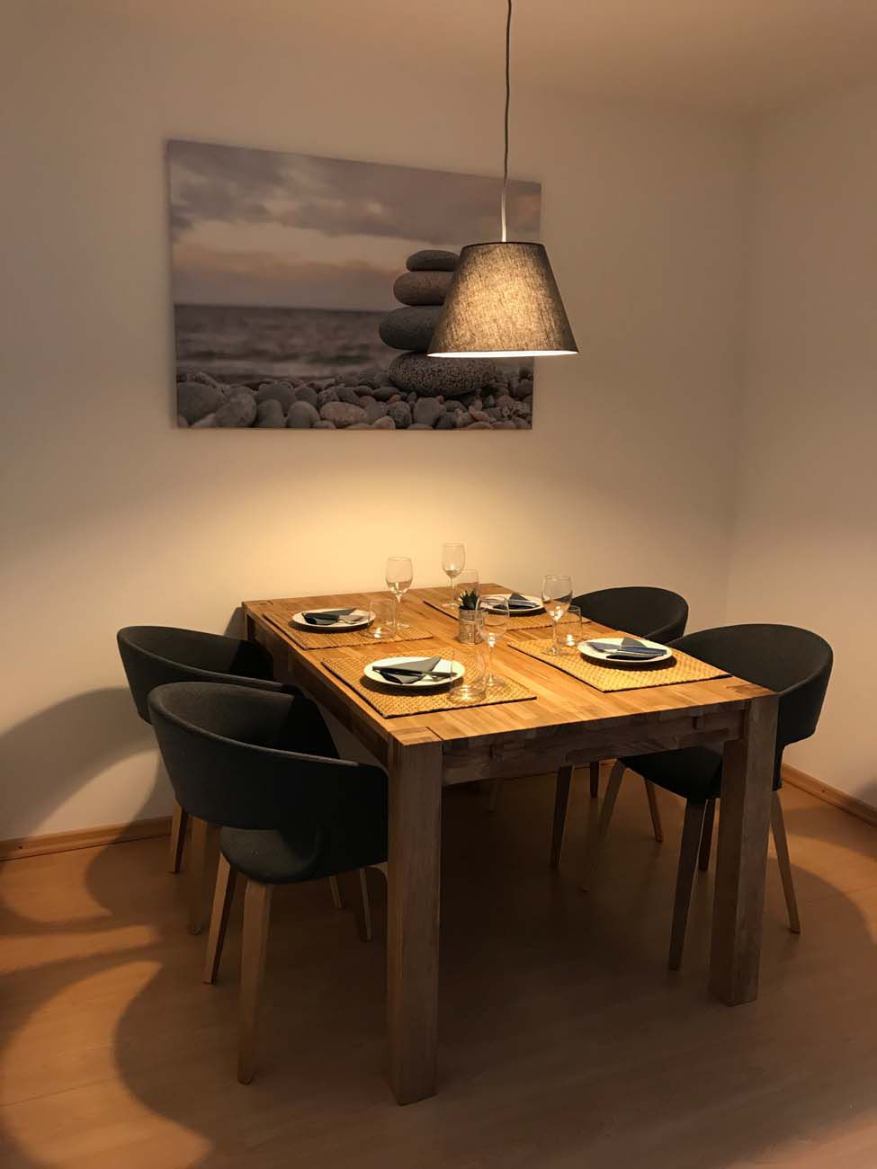 Die in 2019 für Sie neu renovierte und mit Liebe ausgestattete Ferienwohnung verfügt über einen gemütlichen Wohn- u. Essbereich für 4 Personen, einem Schlafzimmer mit Boxspringbett 180x200, einer abgeschlossenen Küche, einer Garderobe, einem Abstellraum, eine geschlossene Veranda mit zusätzlicher Sitzgelegenheit, welche zum Verweilen und Chillen einlädt. Im Wohnbereich befindet sich eine hochwertige Boxspring-Schlafcouch (ausgezogen 160x200), welche gerne von weiteren ein bis zwei Personen genutzt werden kann. Die Ferienwohnung ist ideal geeignet für 2-4 Personen (+1 Kleinkind) Zusammenfassung: