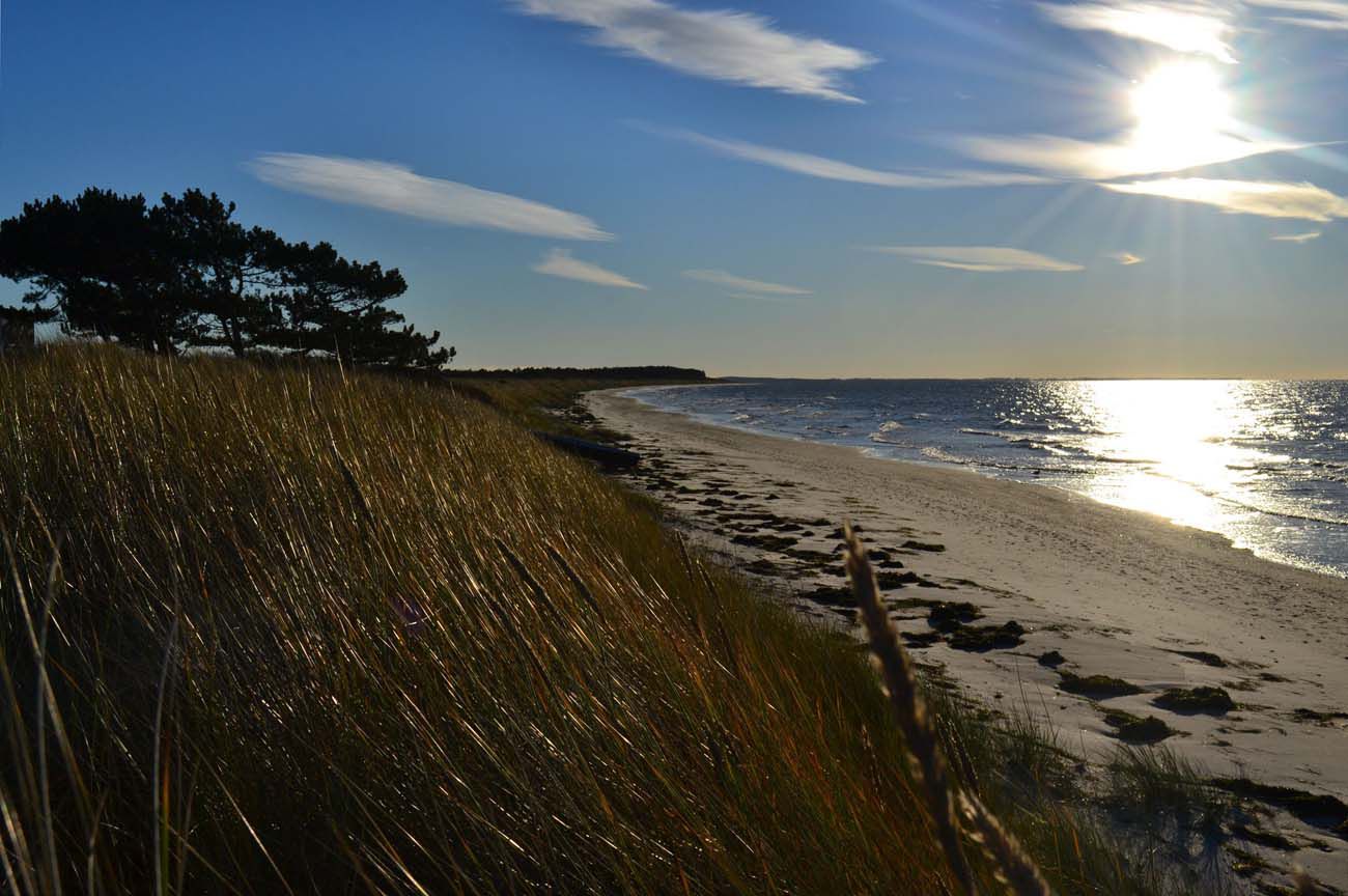 Die Insel Hiddensee liegt westlich von Rügen in der Ostsee: Die 18 Kilometer lange Insel konnte sich als „Touristischer Spätentwickler“ ihren ureigenen Glanz bewahren. Auf der Westseite erstreckt sich der weiße, 16 km lange Badestrand, der zahlreiche Ferienaktivitäten möglich macht. Das Hochland im Norden erhebt sich auf eine Höhe von bis zu 72 m über dem Meeresspiegel. Südlich von Vitte liegt die eindrucksvolle Heidelandschaft. Das Besondere: es gibt keinen privaten Autoverkehr, was den Reiz der wunderschönen Landschaft auf der grünen Insel Hiddensee ungemein verstärkt. Autofreie Insel - Ruhe pur !!! Und die Anreise: Das Linienschiff der Inselreederei fährt ganzjährig, mehrmals täglich, von Schaprode auf Rügen nach Hiddensee. Bedarfs- verkehr mit Wassertaxen wird auch angeboten. Ihren PKW können Sie im Hafen abstellen. Im Winter fahren Bahnreisende nach Bergen auf Rügen, dann mit Bus oder Taxi nach Schaprode. Alternativ: Täglich von April bis Oktober, sowie zwischen Weihnachten und Neujahr, wird Vitte vom Hiddensee-Anleger in Stralsund aus angelaufen. Vom Inselhafen Vitte sind es dann nur wenige Schritte zum Apartmenthaus Arkona. Bei Meeresbrise und blauem Himmel die Insel erkunden: Hiddensee hat viele interessante Orte, die schöne Ziele für Spaziergänge oder Fahrradtouren liefern. Zu Fuß erreichen Sie in 15 bis 20 Minuten den idyllischen Ort Kloster, mit Heimatmuseum, Inselkirche und Leuchtturm. Mit Fahrrädern, die Sie auf der Insel ausleihen können, lohnt sich ein Ausflug in den Norden, nach Grieben und zum Bessin oder in den Süden, in das reizvolle Fischerdorf Neuendorf. Genießen Sie bei Ihren Ausflügen die unberührte Natur der Insel, mit frischer Meeresbrise und strahlend blauem Himmel. Vitte ist der größte Ort auf Insel Hiddensee und Sitz der Inselverwaltung und wird daher auch als die „heimliche Hauptstadt“ der Insel bezeichnet, denn neben dem Rathaus sind ebenfalls Kindergarten, die Schule, ein Arzt sowie eine Filiale der Sparkasse mit einem Bankautomaten in Vitte zu finden. Der Name des ehemaligen Fischerorts hat seinen Ursprung von dem Wort »Vitten«, welches die mittelalterliche Bezeichnung für Heringsfang- und Fischhandelplätze ist. Entlang der Hauptstraße von Vitte und in der Nähe des gepflegten Sandstrandes lassen sich viele kleine Läden und Gaststätten finden. Auch kulturell hat der Ort einiges zu bieten. Der Hafen mit seinen Fischerbooten strahlt bei aller Geschäftigkeit die Hiddenseer Ruhe aus, die selbst hier, zwischen an- und ablegenden Schiffen, deutlich zu spüren ist. Hier finden Sie auch die Insel Information Hiddensee. Entlang des Hafens verläuft der Deich, der von Vitte nördlich nach Kloster und bis zum südlichen Ortsausgang Vitte führt. Heute dient er als Küstenschutz und als Route des Rad- und Wandernetzes.