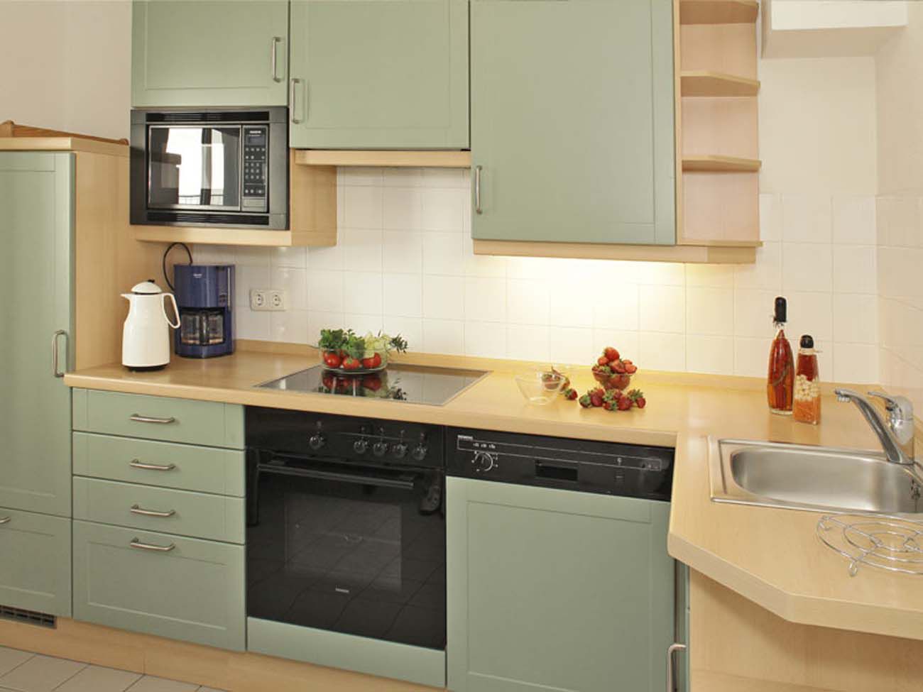 • Küche: (E-Herd mit Ceranfeld, Mikrowelle, Geschirrspüler, Kühlschrank, Wasserkocher, Kaffeemaschine, Toaster, Geschirr usw.)